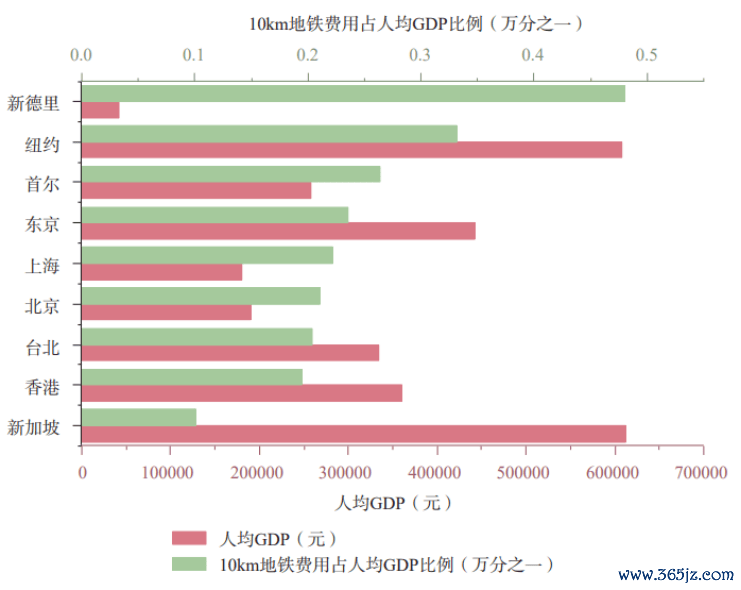 将当地经济水平筹商在内,论断大约更合理。字据北京交通大学高档工程师鲁放等东说念主的磋商,在各大国际城市中,新德里地铁用度占东说念主均GDP比率相对较高,而新加坡相对最低,北京、上海地铁票价在国际鸿沟内处于中低水平。